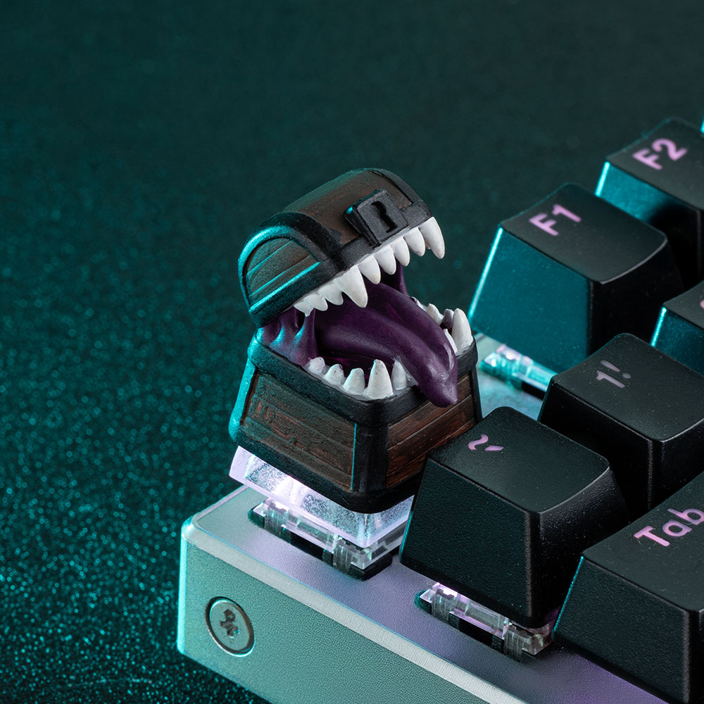 Explore our Mimic keycaps, featuring a simple brown design that perfectly captures the charm of the gaming world. The keycaps have transparent eyes that allow the light from the keyboard to shine, creating a mysterious and vivid effect that makes your keyboard shine with unique brilliance. The playful tongue extends out, adding a sense of fun and adding a touch of humor to the gaming experience.