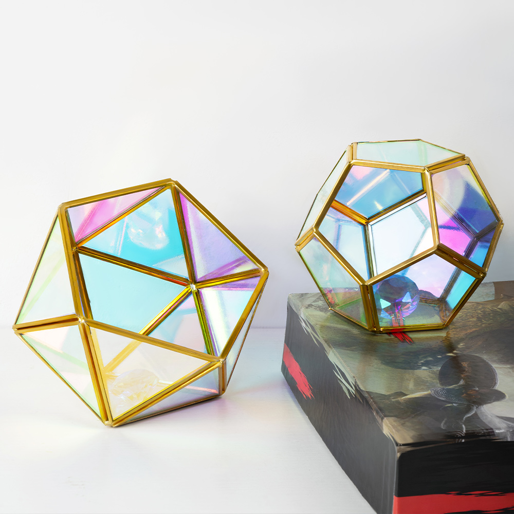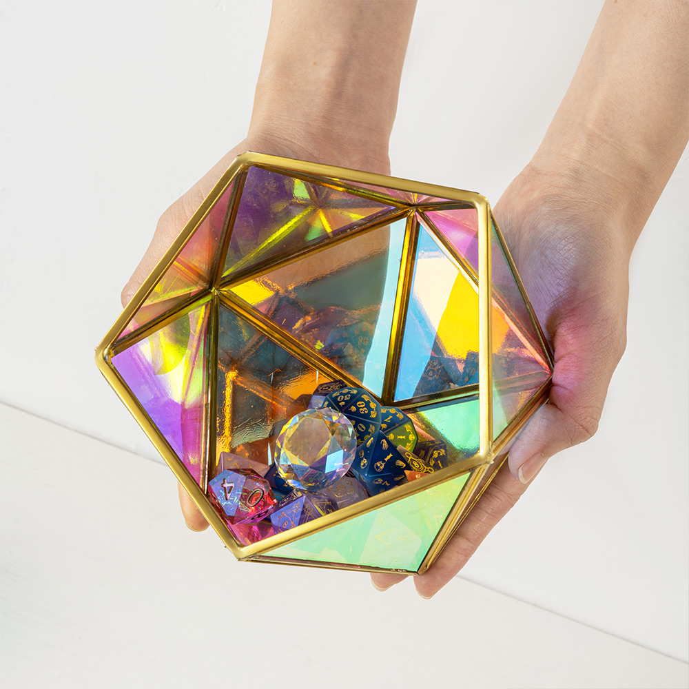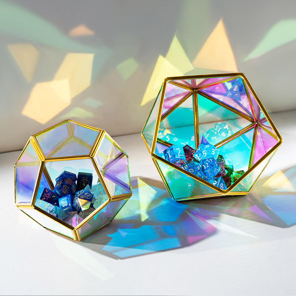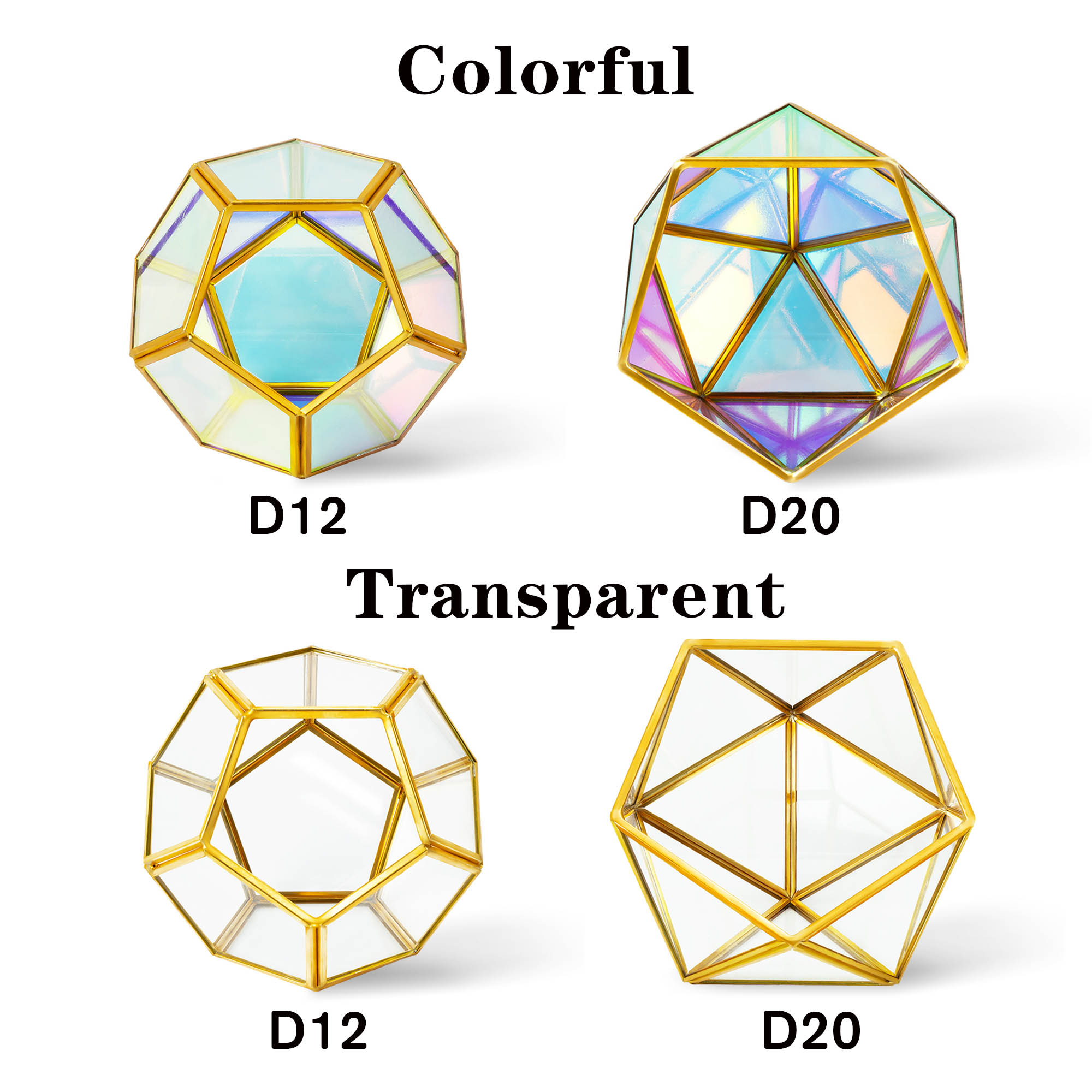 A must-have to make your gaming experience more exciting - this fun D20/D12 glass dice bowl! Carefully connected by transparent glass, presenting a unique 20 sided and 12 sided dice shape. The sunlight shines through the dazzling glass and sparkling diamonds, reflecting a brilliant light and adding a touch of dazzling color to your desktop.