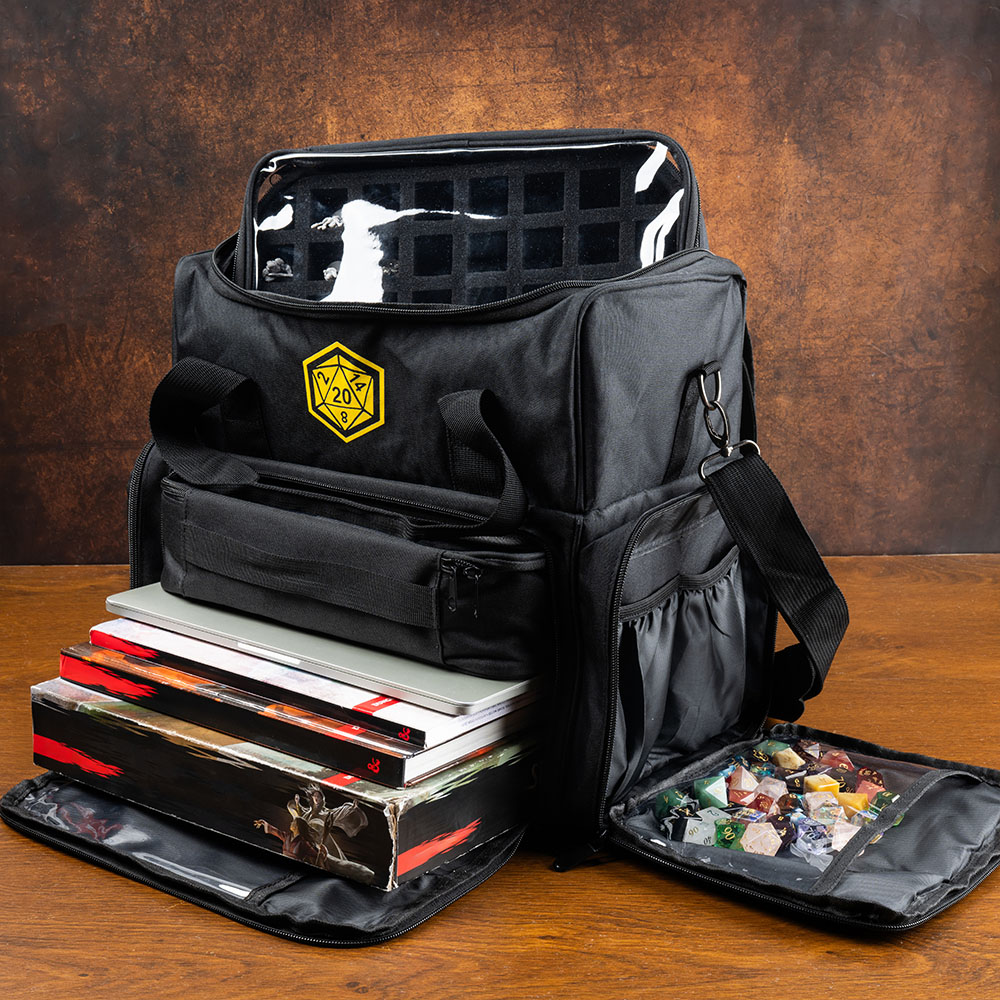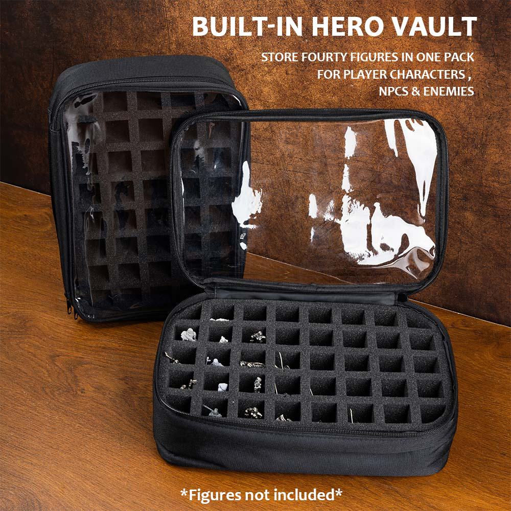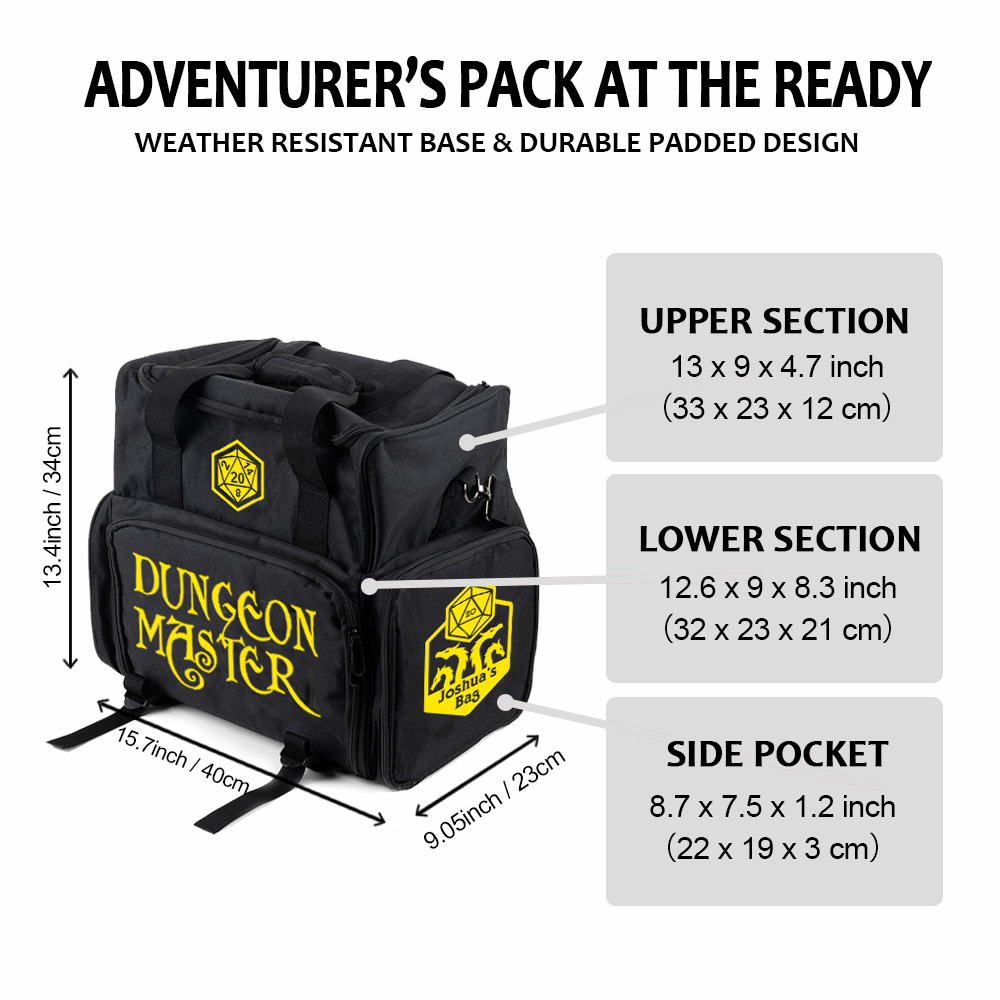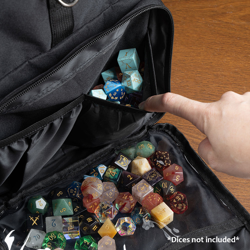 This multifunctional DND adventurer bag is an essential equipment for every tabletop RPG player. The spacious main compartment can accommodate everything you need, from dice and mini models to notebooks and maps, making it easy to tackle any adventure. The built-in padded partition can store 4-8 books and reference materials, helping you easily organize your personal mysterious library.