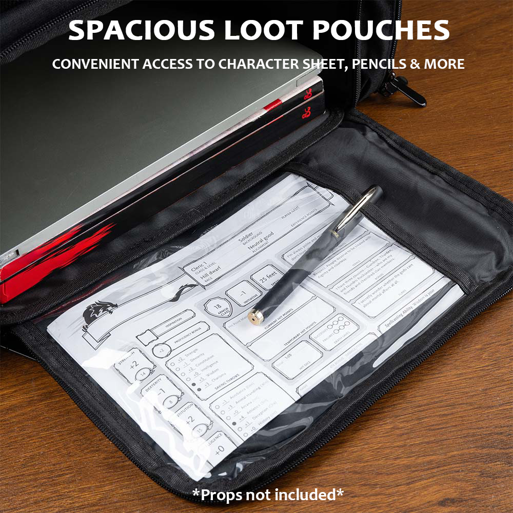 3.The side pocket design is convenient and suitable for storing loose dice, pencils, tokens, character sheets and small notebooks.