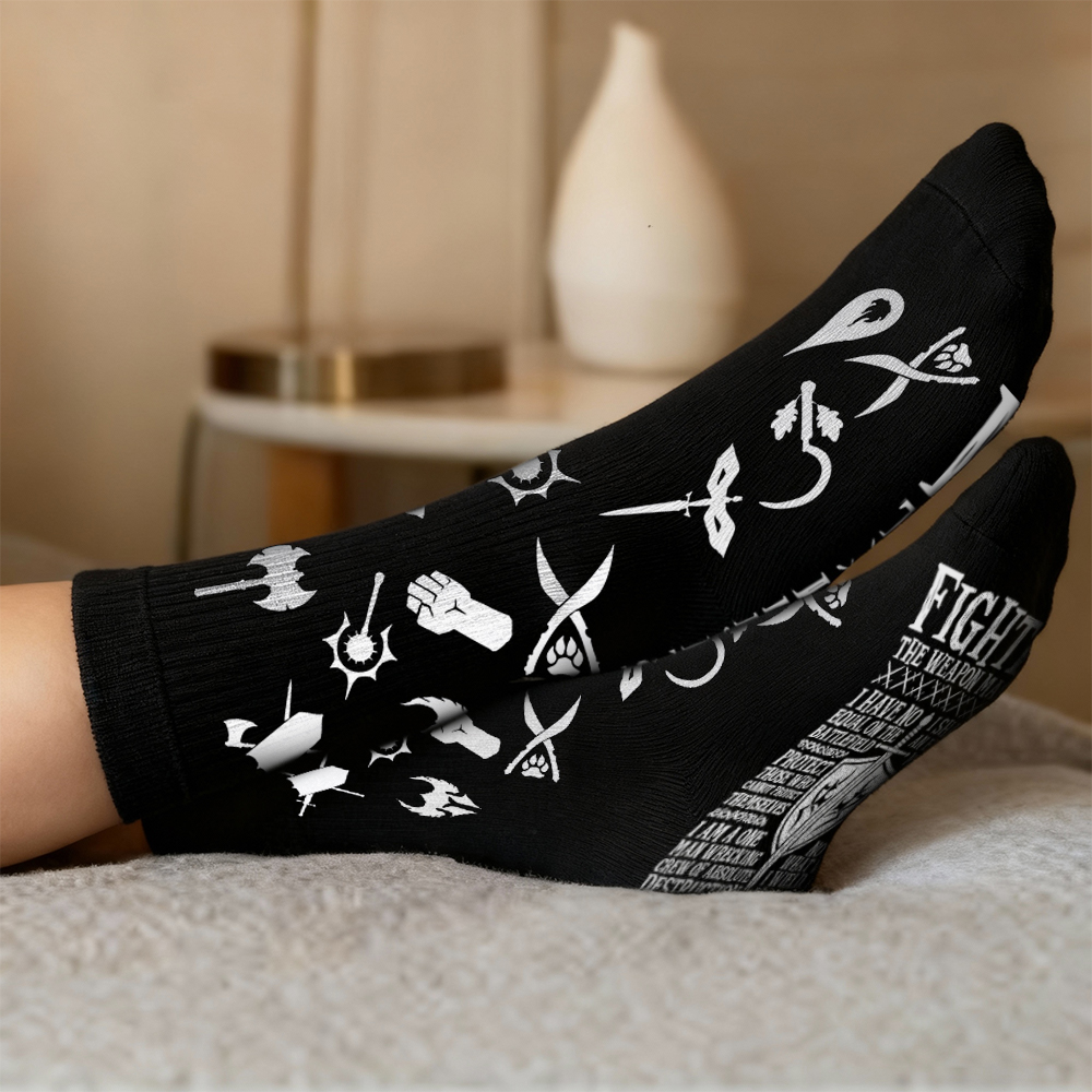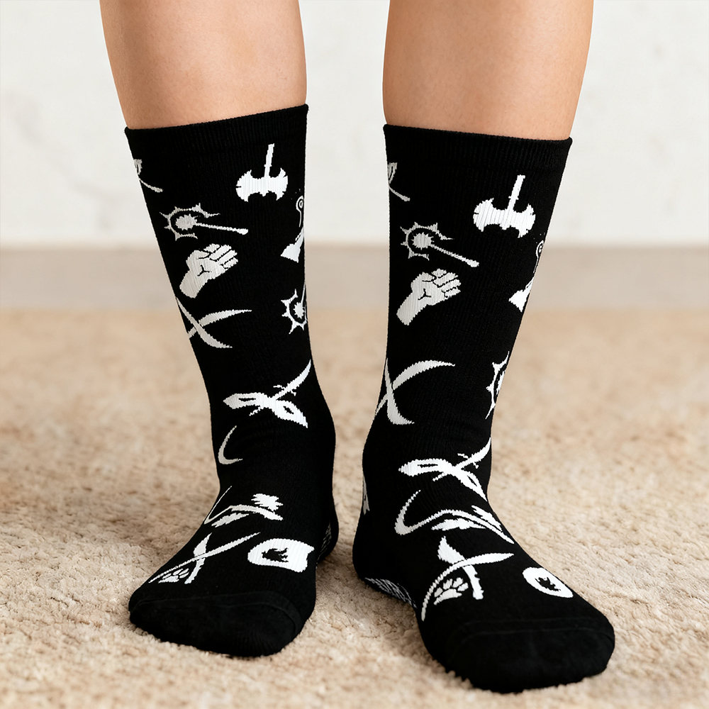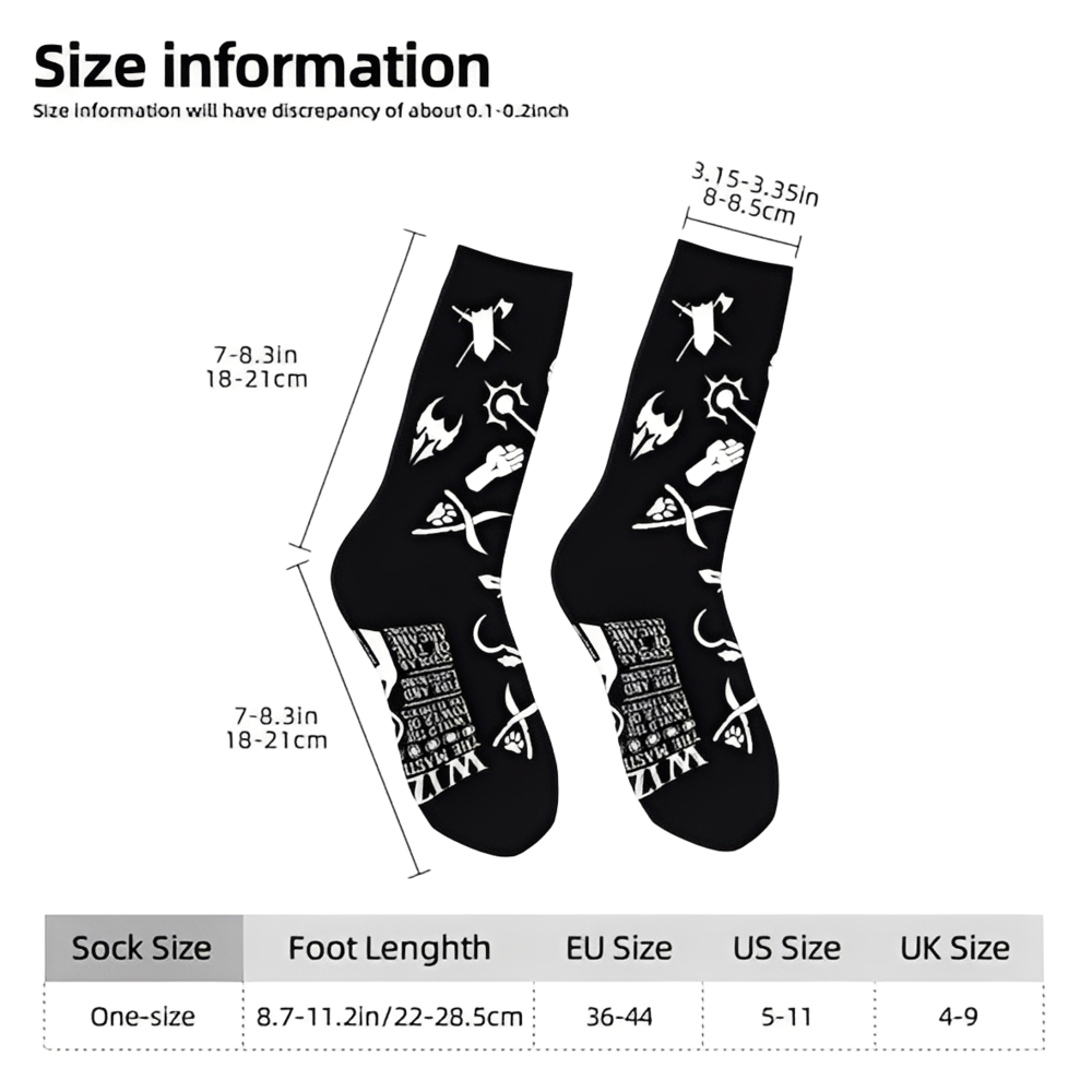 Add a unique touch to your D&D adventure with mid-Calf socks designed specifically for D&D players! This sock combines comfort and fashion, allowing you to showcase your professional identity at all times in the game. Whether you are a wizard who loves casting spells or a brave warrior, we offer you a variety of choices to help you become a prominent presence in every game.