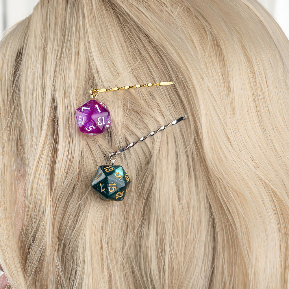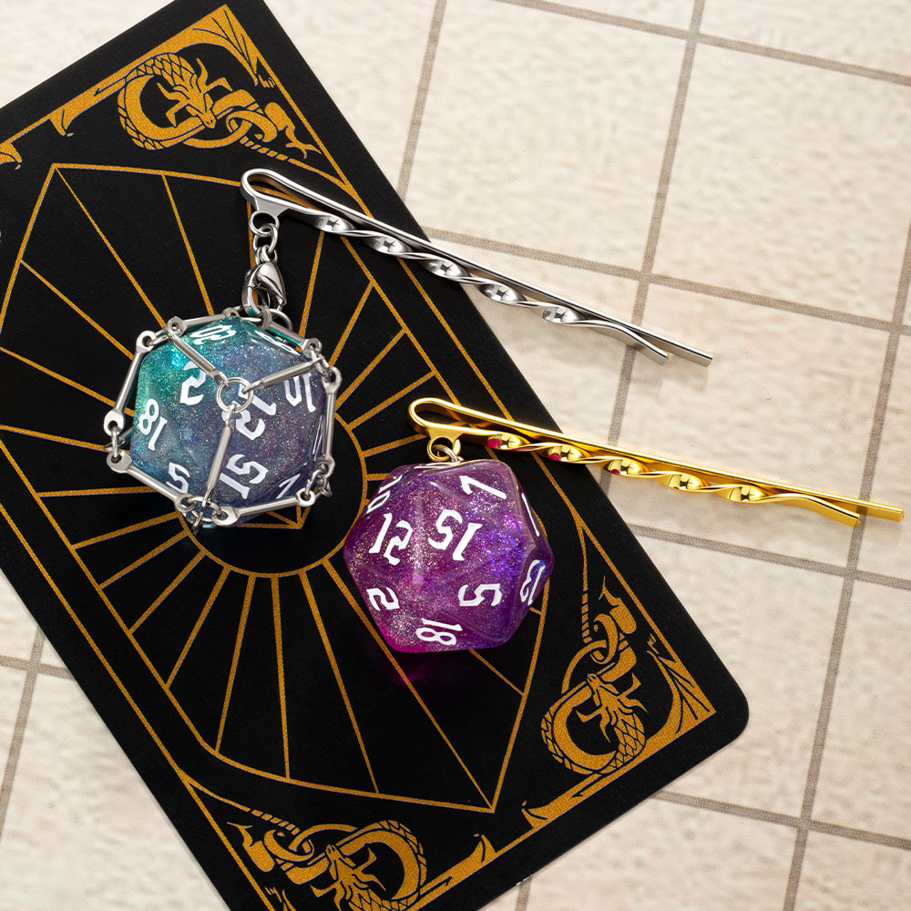 This D20 dice hair clip has multiple dice patterns for you to choose from, making it easy for you to create the perfect look. And the dice can be easily removed and replaced, allowing you to freely match according to your daily outfit, ensuring that every time you go out, you look brand new. Make this hair clip the perfect embodiment of your personality and style!