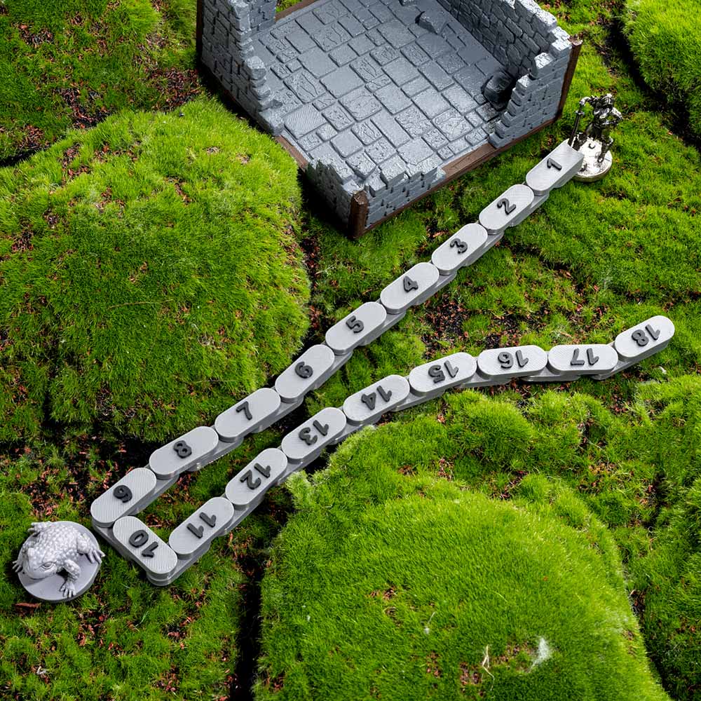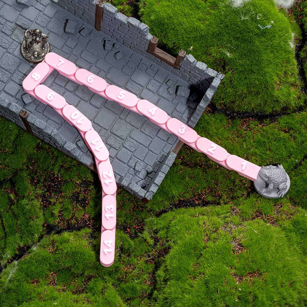 A flexible measurement tool designed specifically for TRPG, perfectly compatible with board games such as Dungeons&Dragons, allowing for easy measurement of movement distances in non grid environments or complex terrains, bidding farewell to tedious calculations! This all-in-one 3D printed measuring tool has movable joints and supports free bending to adapt to various corners or curved paths, making it convenient and practical. Each measurement segment is marked with a clear 1-inch incremental scale to ensure accurate measurement.