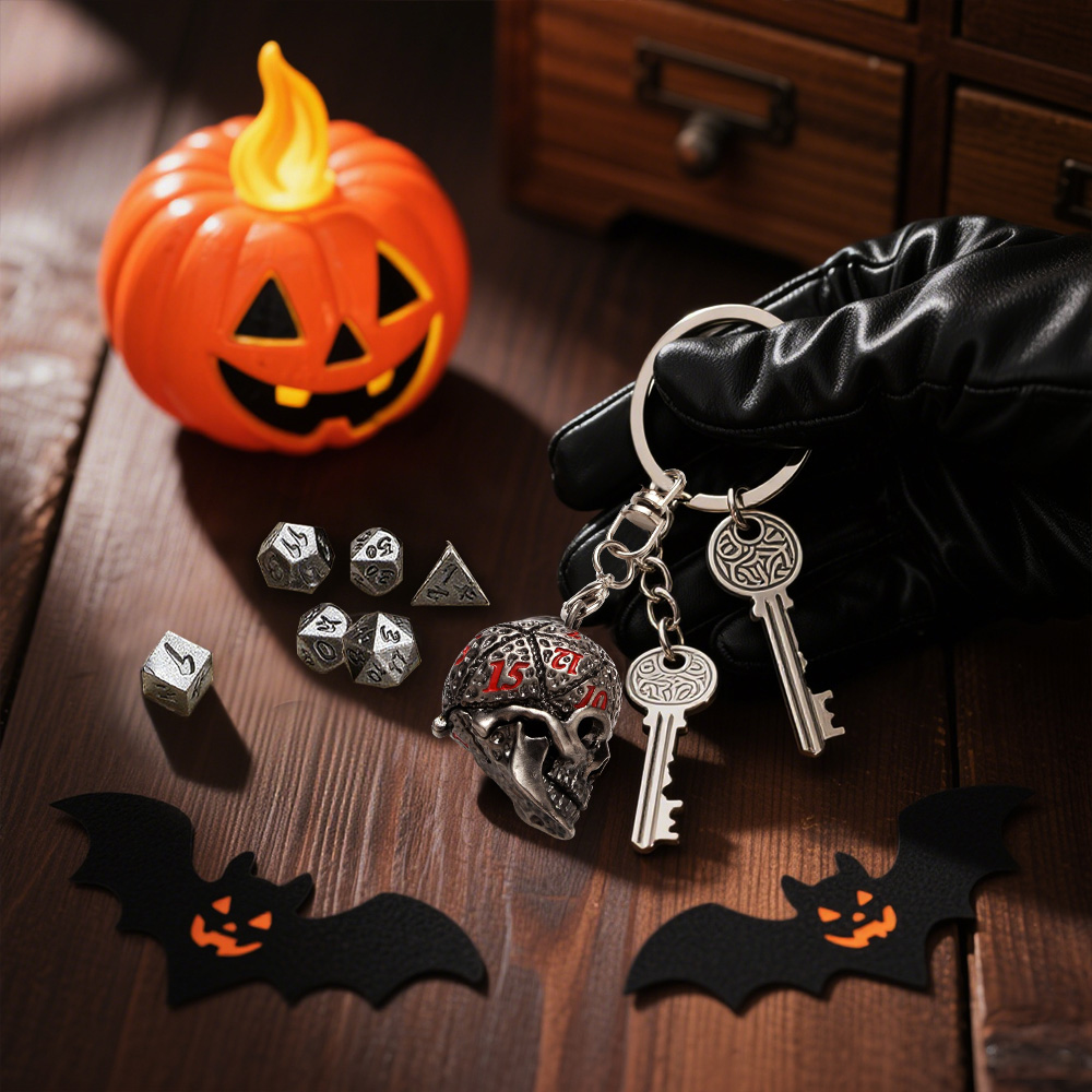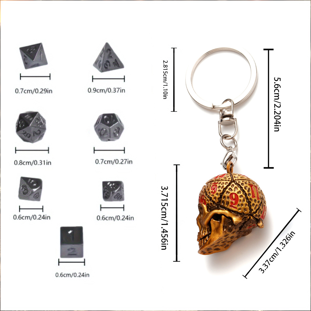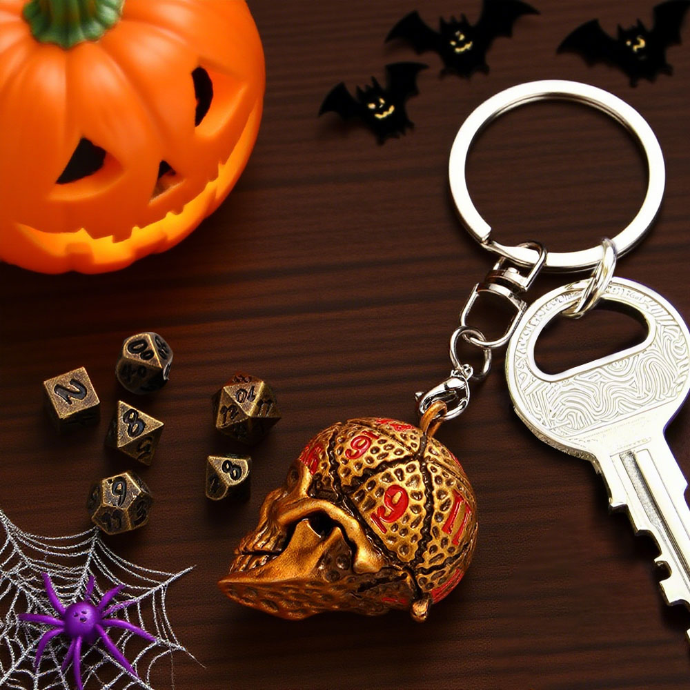 This unique skull keychain is not only a practical tool in daily life, but also the perfect companion for board game enthusiasts. Its unique design allows for easy opening of the jaw and accommodates a set of mini DND dice inside, allowing you to participate in games anytime, anywhere. Whether it's battling with friends on game nights or in daily life, this keychain can bring you mystery and fun.