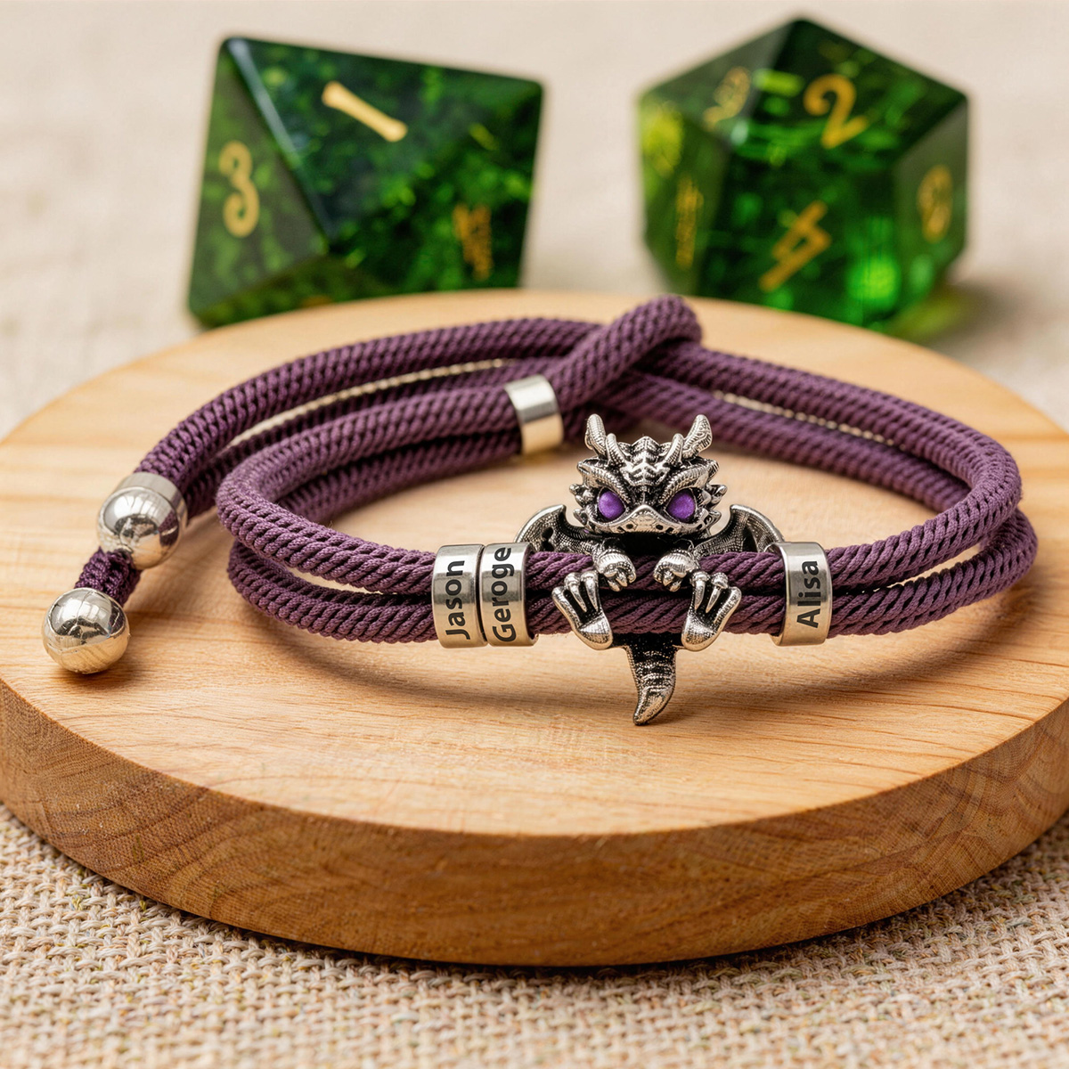You can choose the color of dragon eyes and rope according to your own style to create a unique personalized bracelet. In addition, multiple names can be customized on the wristband to give it more personal meaning.