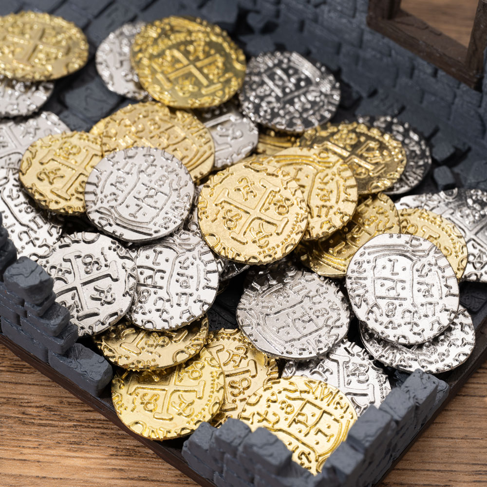 Experience real metal coins and bring unparalleled gaming fun! Our set of 25 coins is inspired by historical gold coins and is suitable for various occasions such as tabletop games, board games, real-life role-playing, theme parties, etc. The shape of each coin is slightly irregular, showcasing a unique retro style and giving you a unique gaming experience.