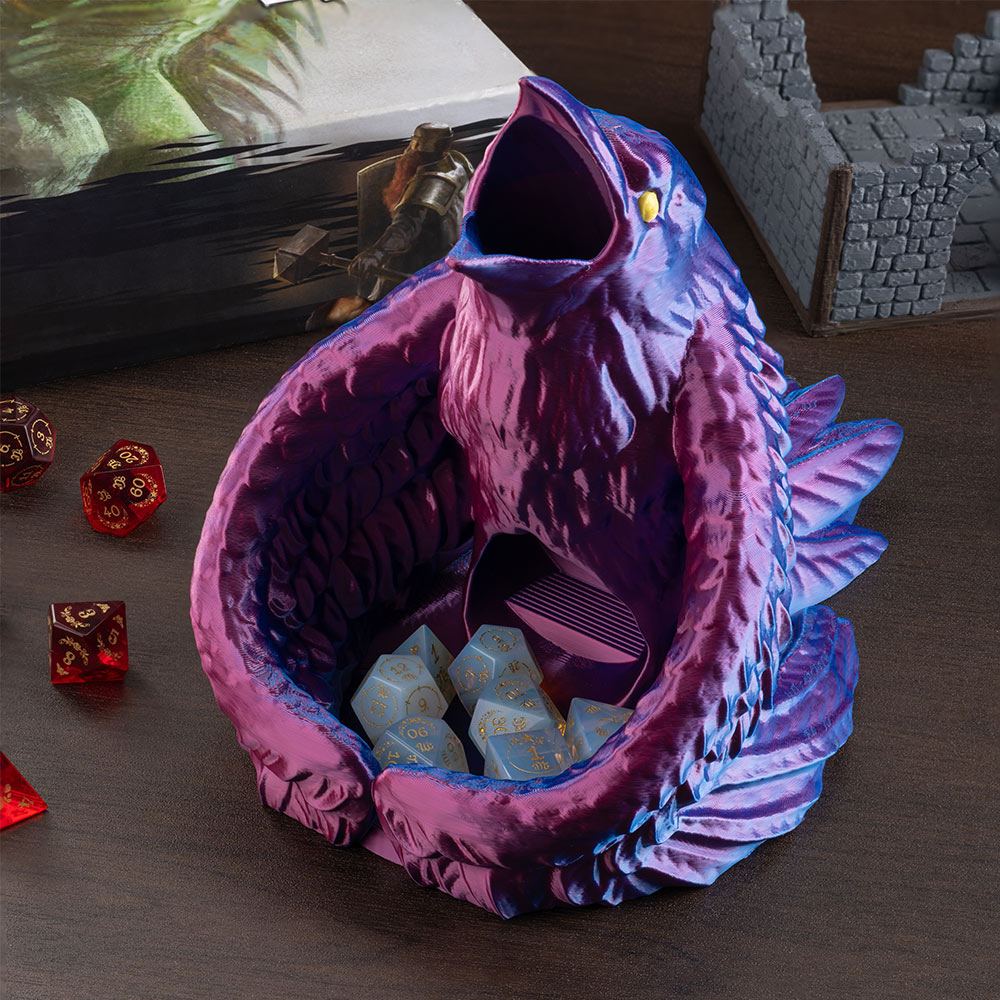 This dice tower is inspired by the delicate Raven shape and uses full-color high-precision 3D printing technology to present feather textures and three-dimensional contours, with every detail as vivid as a sculpture. The appearance has both a fantastic atmosphere and artistic sense, serving as both a practical dice rolling tool and an eye-catching decorative piece on the desktop. Optional colors and personalized customization options make it the exclusive accessory or centerpiece of your role-playing set's collection display.