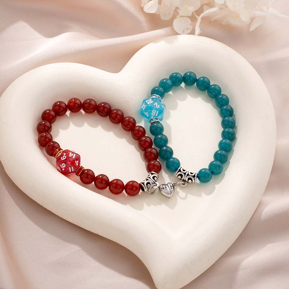 Show your love for tabletop games by choosing this personalized DND magnetic mini D20 bracelet! Each bracelet is handmade with mini colored dice and 8mm glass beads, containing a lot of love. Their elastic design provides a comfortable wearing experience, while also supporting customized size options without the hassle of buttons, making it convenient to wear. Whether worn alone or stacked together, these bracelets can perfectly showcase your unique style.