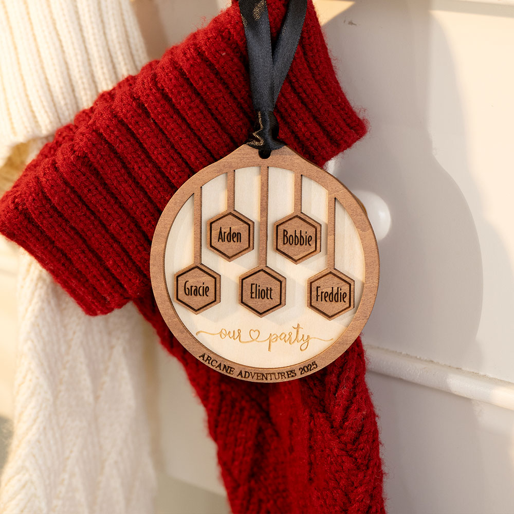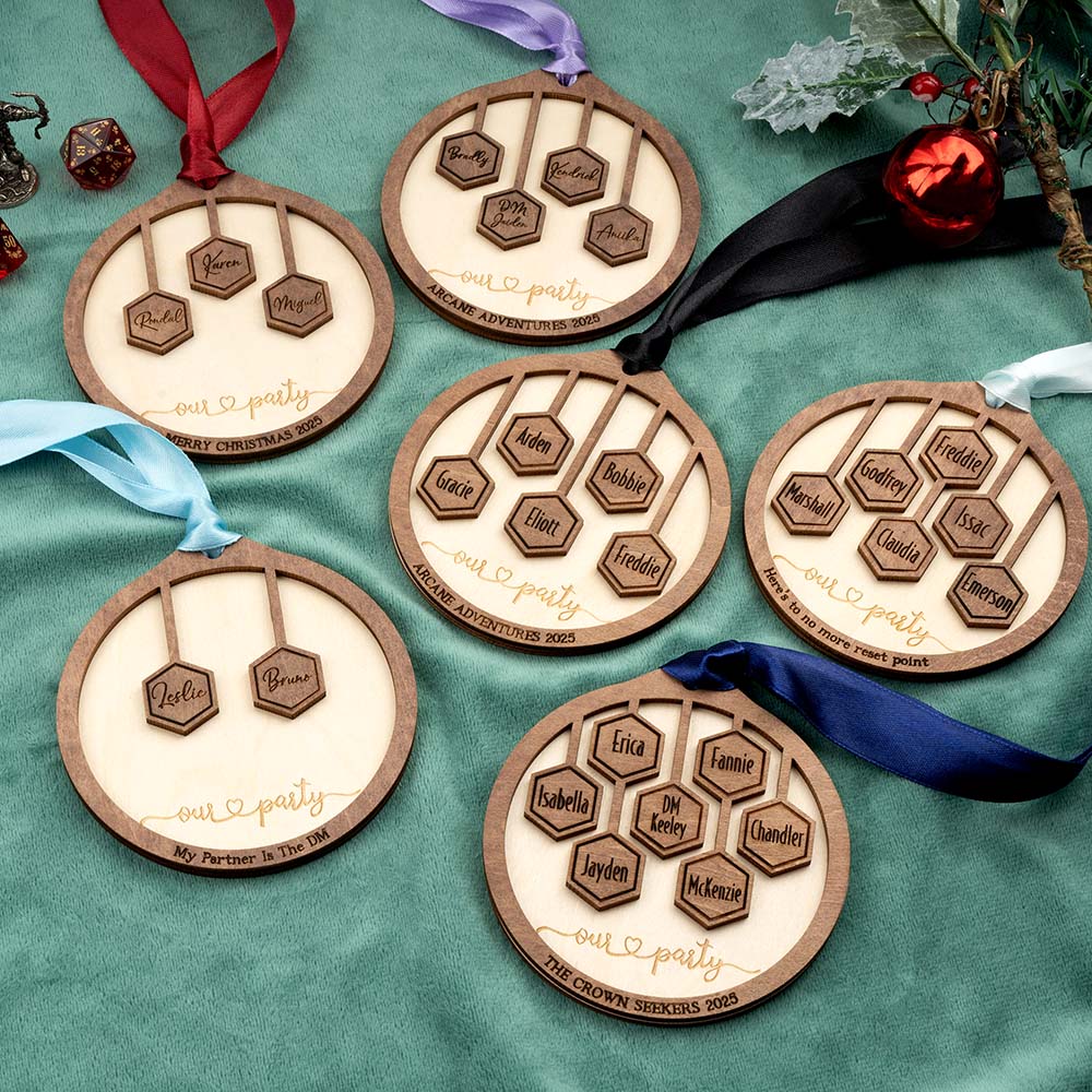 Turn your Christmas tree into a tabletop adventure! Our customizable wooden dragon and dungeon Christmas decorations use laser engraving technology to add personalized colors to your holiday. These unique decorations are made of Baltic birch and black walnut, adding warmth and beauty to your holiday.
