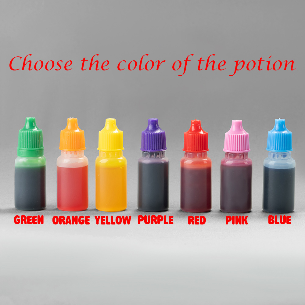 Usage method 1 Preparation: Pour an appropriate amount of water into a glass bottle. two Mixing: Drop the selected color of the medicine into the bottle according to your preference. three Mixing: Adjust the color depth according to the amount of added potion to create a unique magical potion.