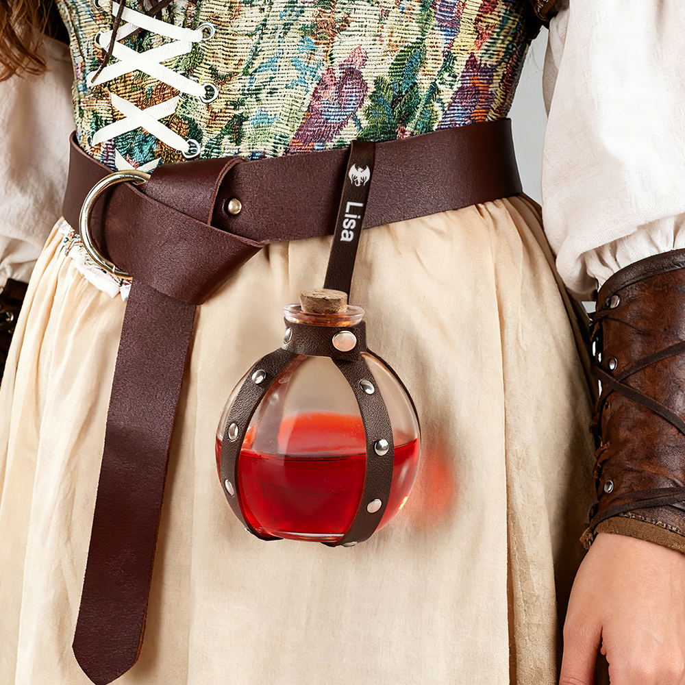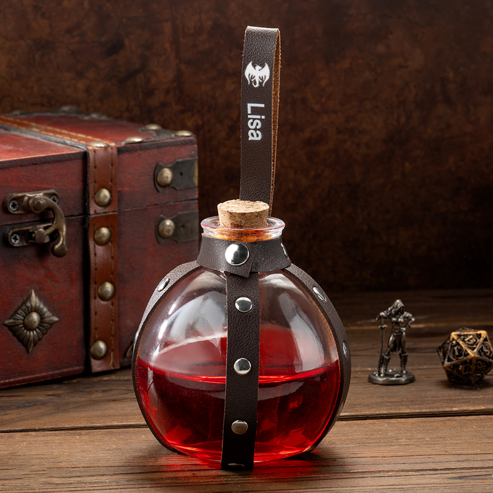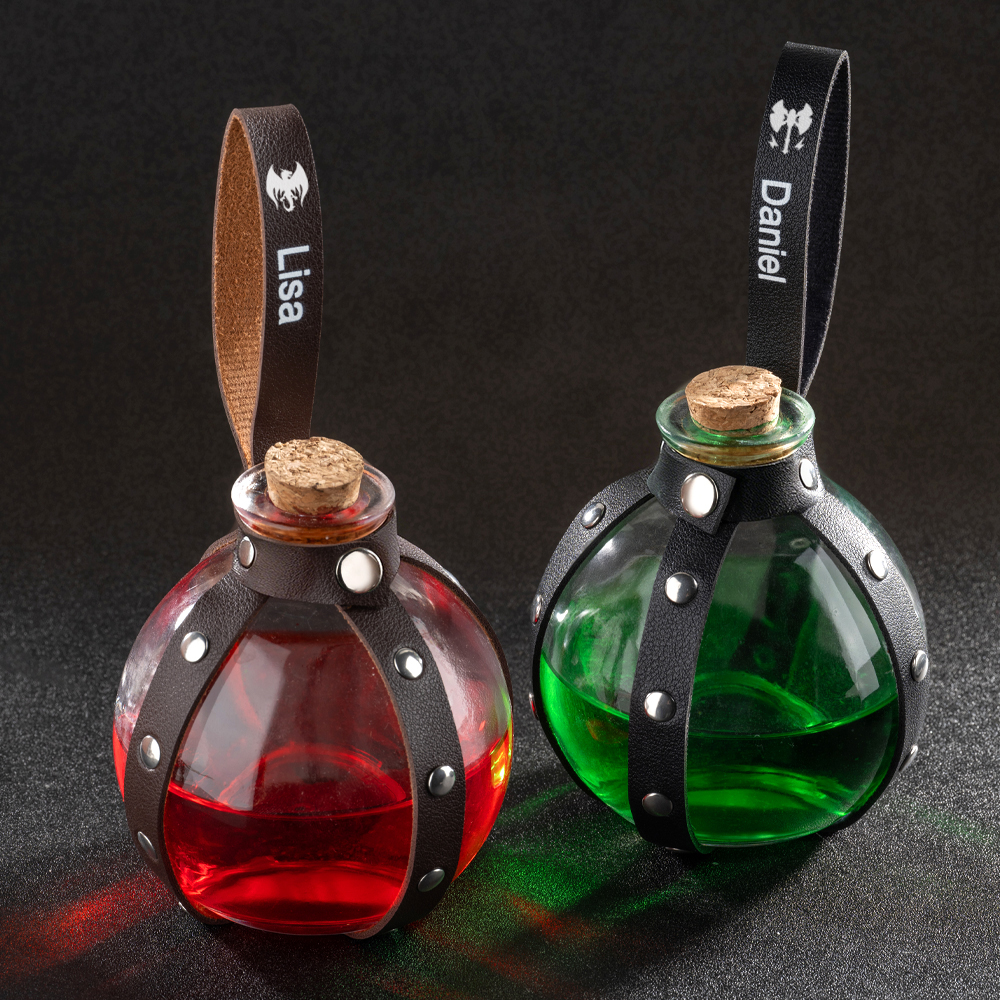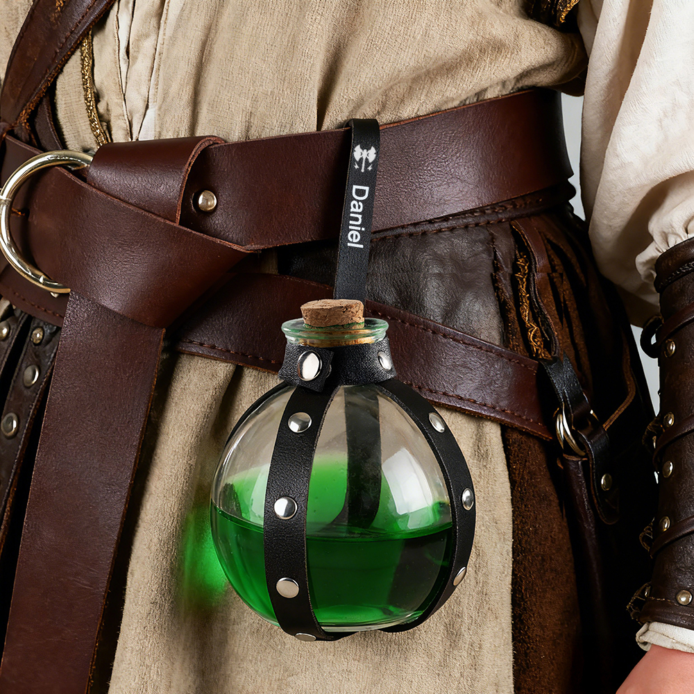 Explore the world of magic, starting with this unique DND magic potion bottle! Whether as a small prop for role-playing or a home decoration, it is not only practical, but also adds a touch of color to your adventure. The potion bottle comes with classic brown and black straps, easily hanging around your waist, ready to cast magic at any time, adding realism to your character. At the same time, we offer seven colors of potions: green, orange, yellow, purple, red, pink, and blue. Users can customize the color depth of the potions according to their personal preferences, providing a more personalized experience.