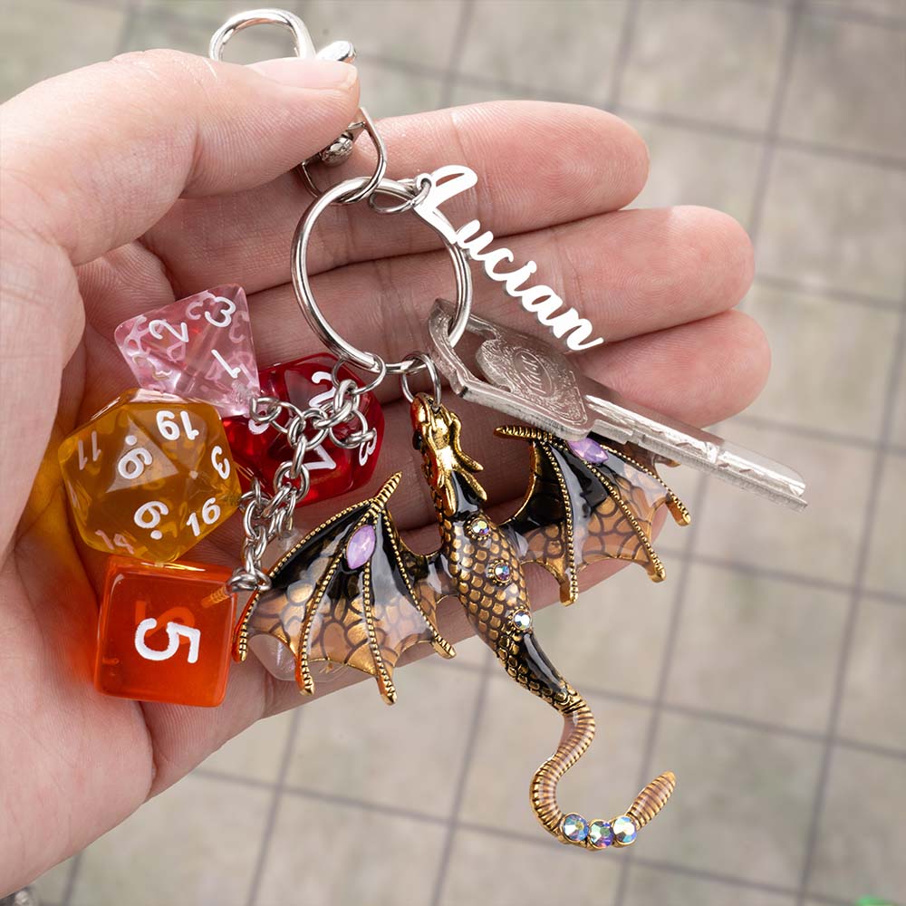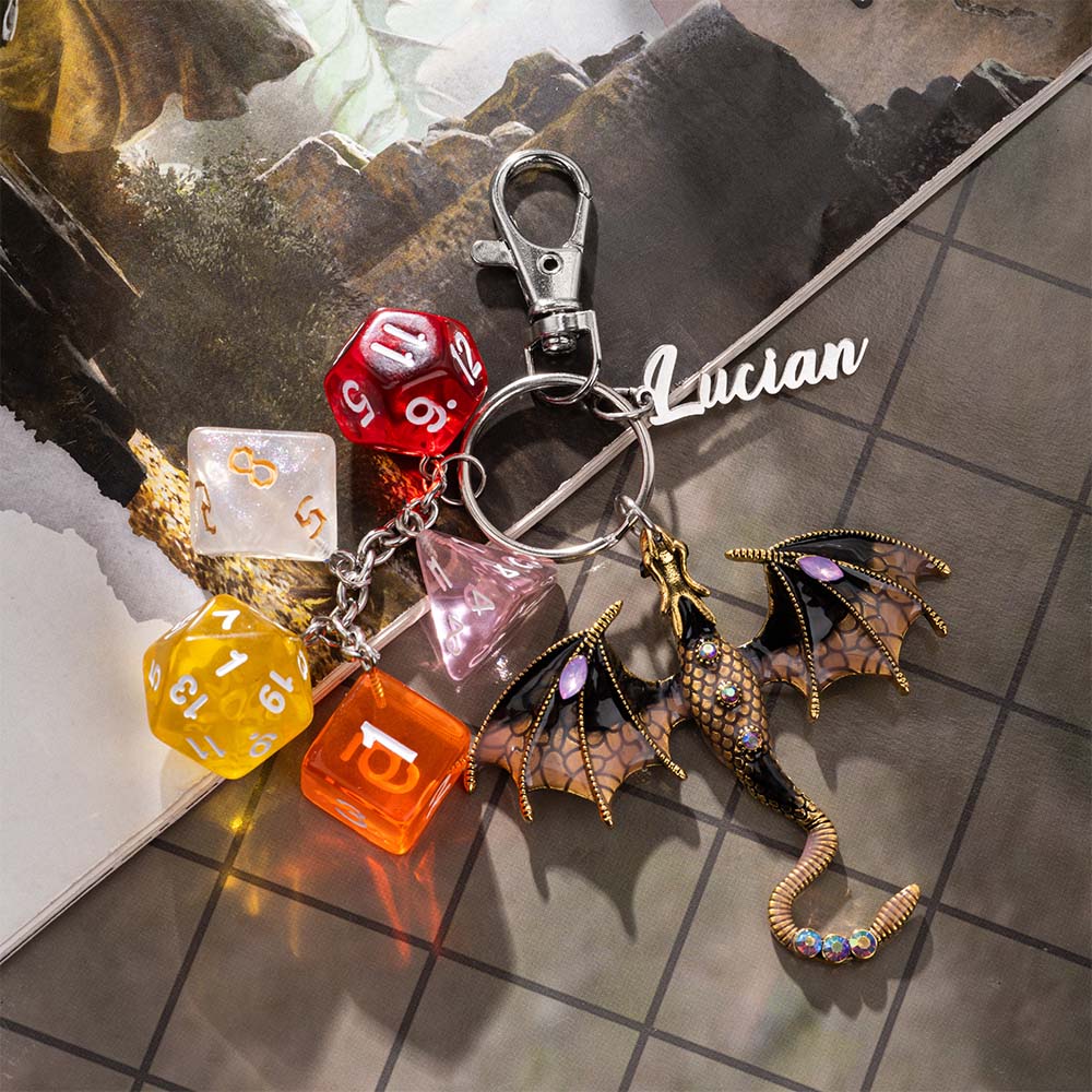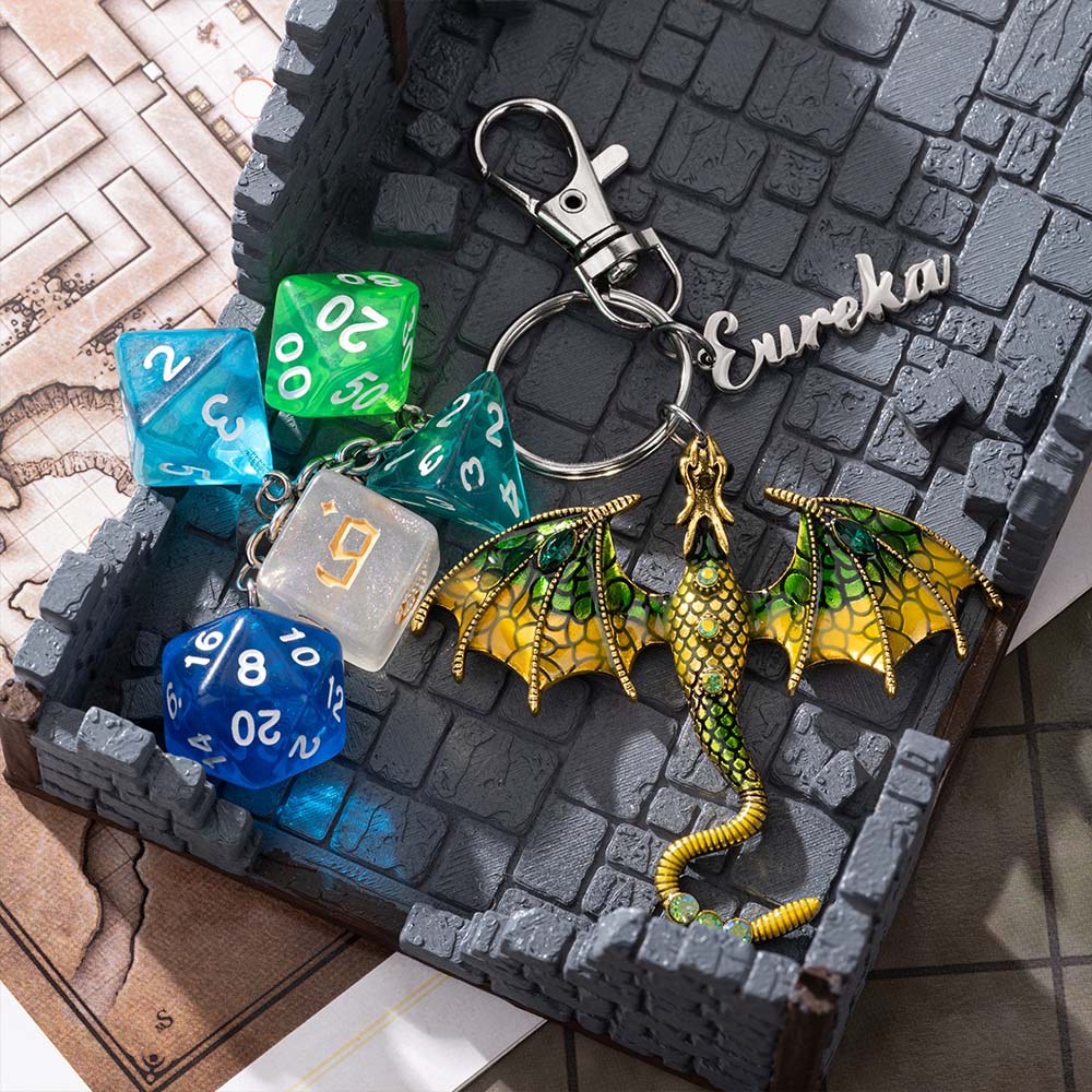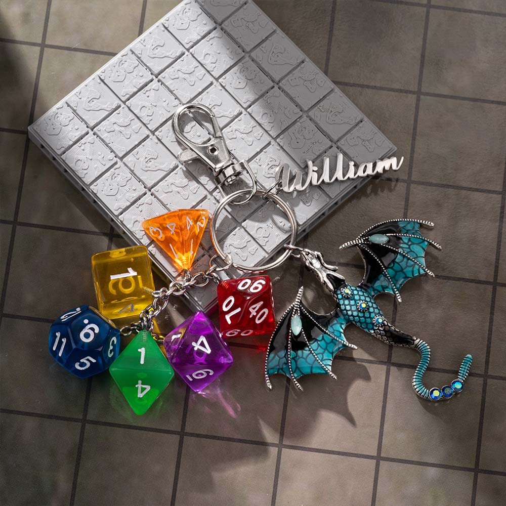 | Material | Dragon: Metal; Dice: Acrylic; Name Brand: Stainless Steel |