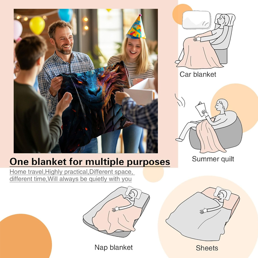 Experience luxury and comfort with this super soft and durable flannel blanket! The unique dragon pattern immerses you in an adventurous atmosphere, adding infinite fun and personality. Whether watching TV on the sofa or relaxing in bed, it can provide you with warm care. Rich size options suitable for all age groups, easily wrap around adults, teenagers, and children.