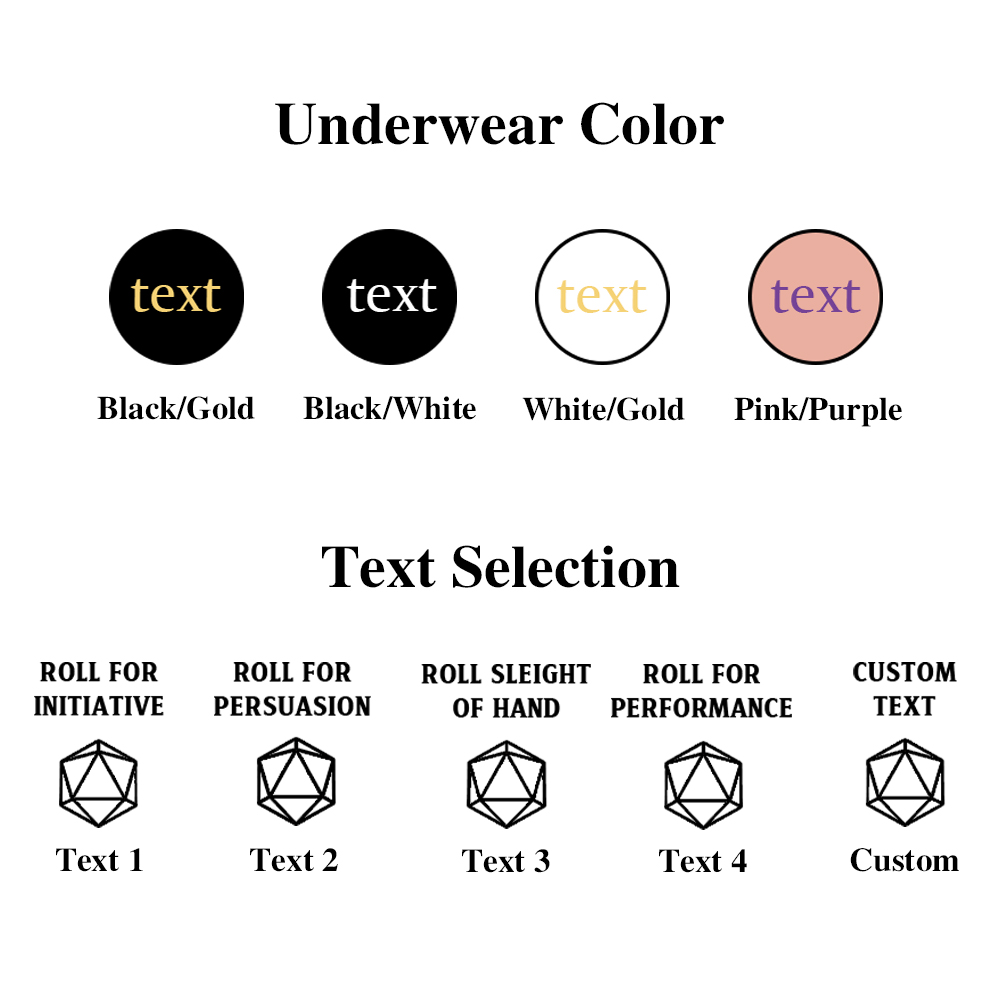 This underwear is inspired by classic DND elements, adding fun and helping you achieve the best results in both gaming and daily life. Whether it's "Roll for Initiative," "Roll for Persuasion," or "Roll for Sleight of Hand," this unique lingerie will bring more fun to your love game.