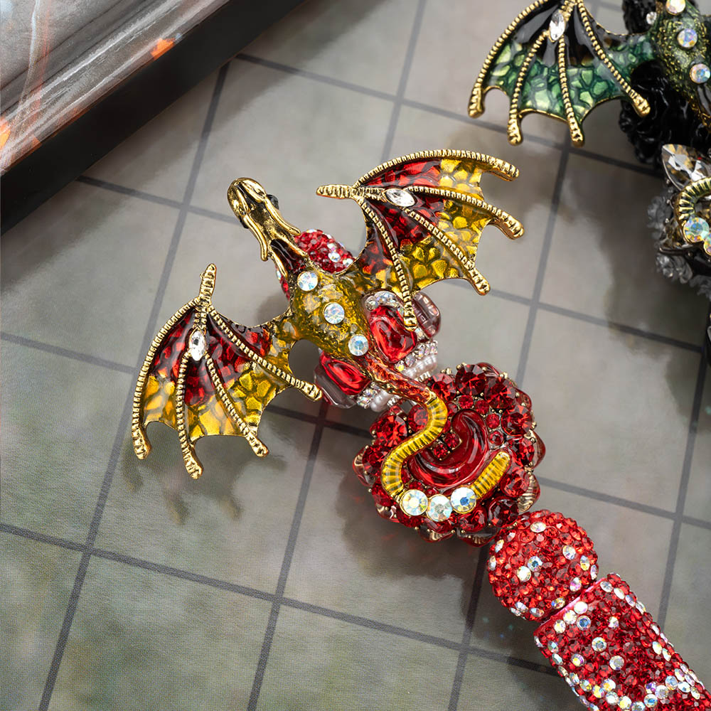 This dragon pen is adorned with brilliant diamonds, showcasing luxury and mystery, while the dragon shaped decoration on the top adds a magical color to it. Whether used for writing, painting, or as decoration, it can make every writing full of inspiration and passion.