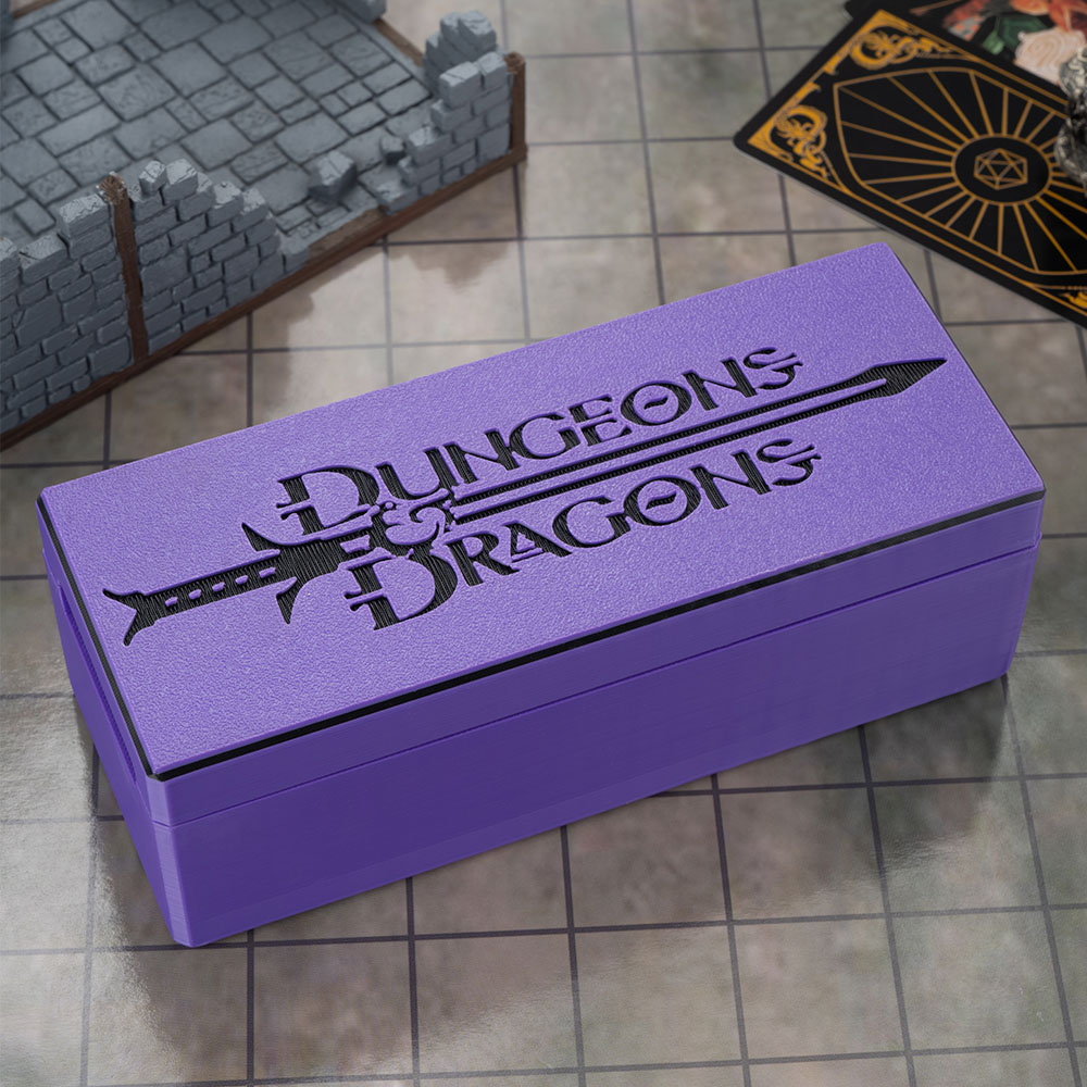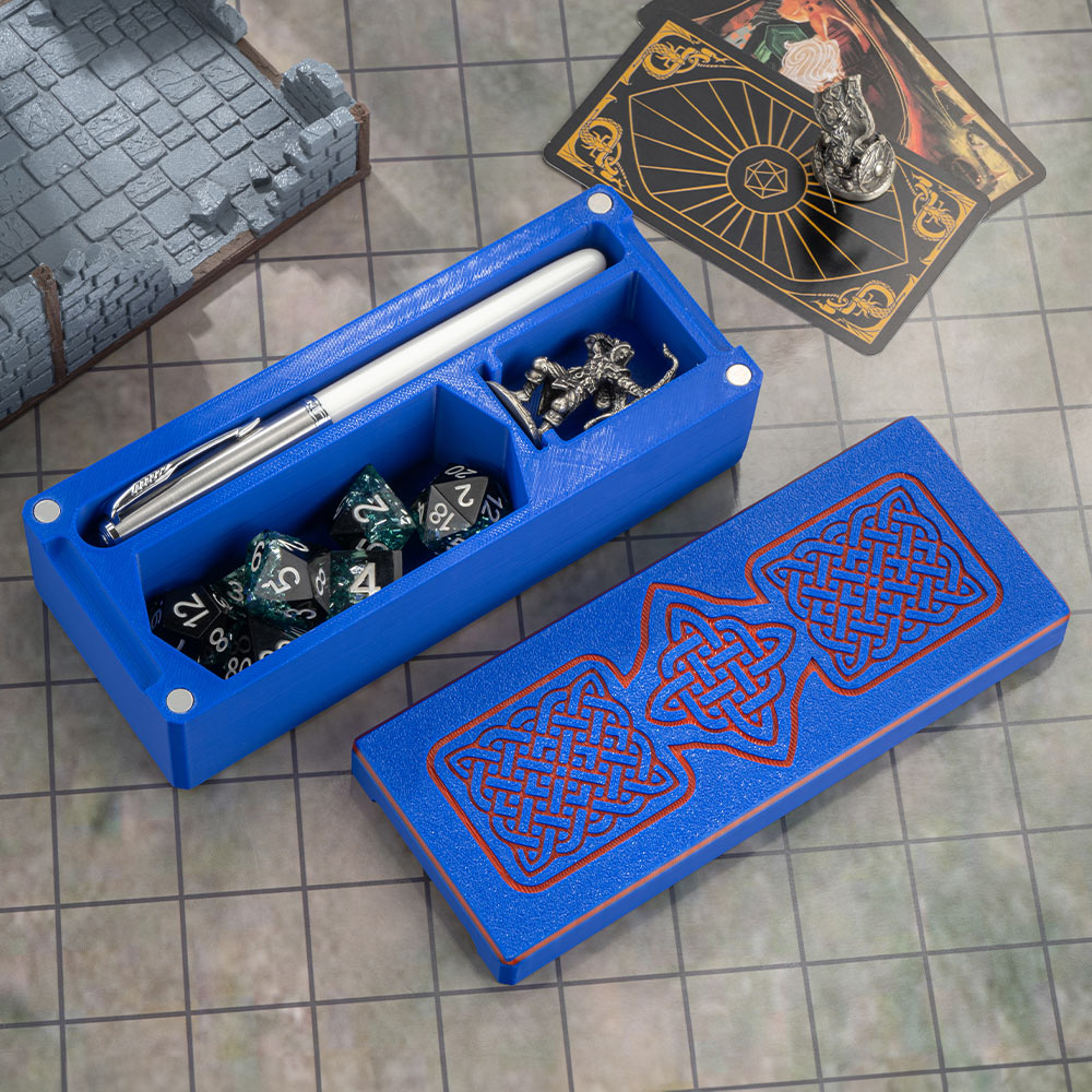 Explore a brand new role-playing experience with this all-in-one travel kit, making your DND adventure more convenient and secure! This multifunctional storage box is designed specifically for role-playing games and can accommodate a mini model with a 26mm base, a 150mm long pencil, eraser, and dice. After opening the box, it can also transform into a dice tray, making it convenient for you to play games anytime.